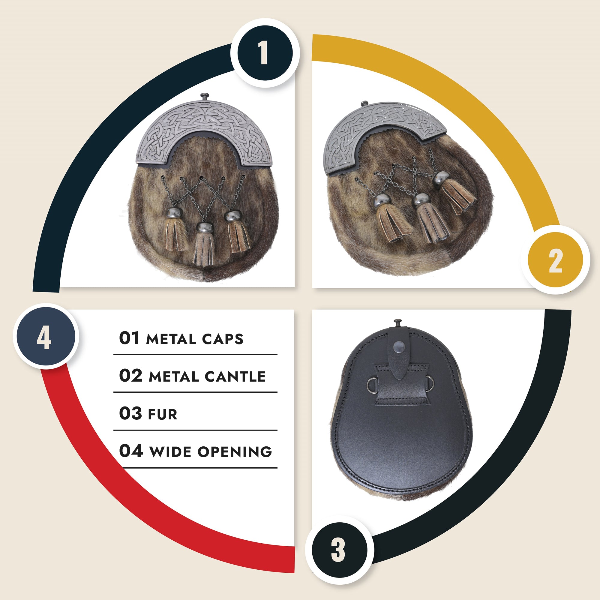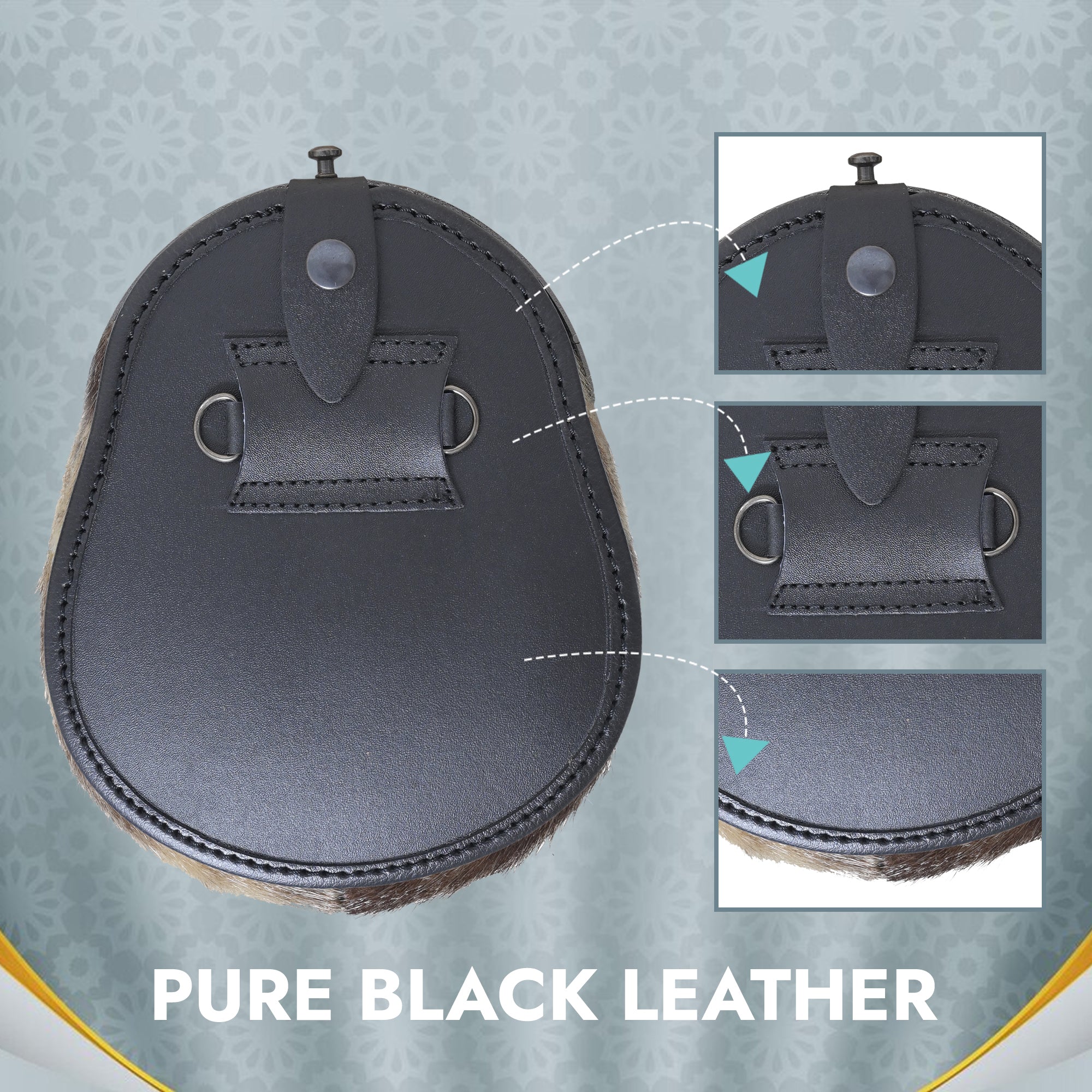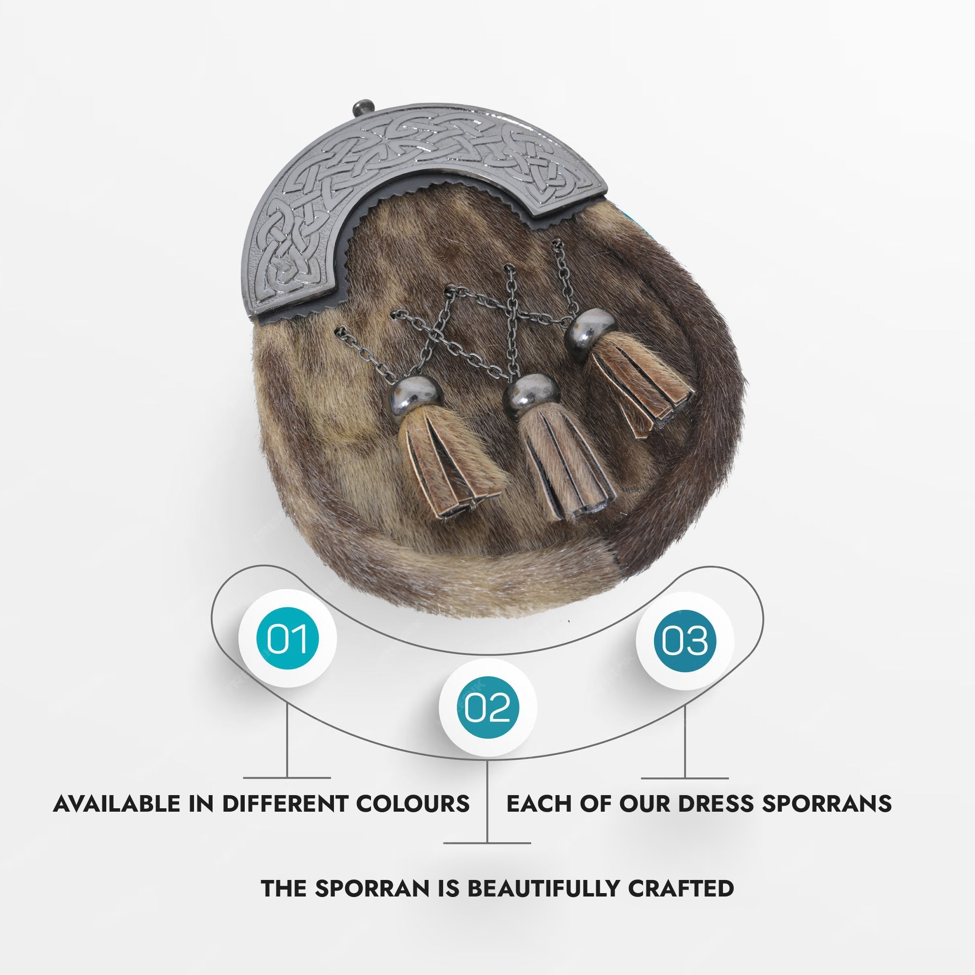 These beauties are made with real fur on the front and genuine leather on the back. They're a mix of classic and modern, perfect for any kilt outfit.